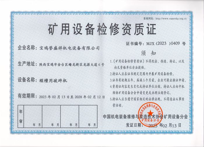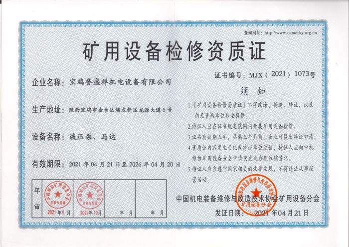 寶雞譽(yù)盛祥機(jī)電設(shè)備有限公司成立于2013年6月,注冊(cè)資本6000萬(wàn)元,占地15000余平方米,位于寶雞市蟠龍新區(qū),交通方便,地理位置優(yōu)越?,F(xiàn)有員工30余人,主要設(shè)備20余臺(tái),是寶雞市及周邊地區(qū)專(zhuān)業(yè)從事礦機(jī)配件生產(chǎn)及工礦機(jī)械維修的企業(yè),有32種礦用設(shè)備維修資質(zhì)及15種托輥生產(chǎn)煤安資質(zhì)證書(shū),是寶雞市應(yīng)急管理局招商引資和重點(diǎn)幫扶企業(yè)...